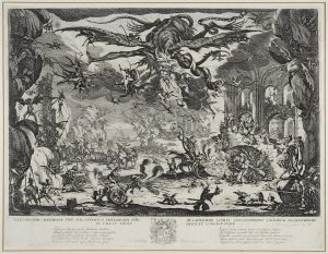 « Vous voulez, ajoute Démocède, voir mes estampes. Et bientôt il les étale et vous les montre ; vous en rencontrez une qui, ni noire ni nette, ni dessinée et d’ailleurs moins propre à être gardée dans un cabinet qu’à tapisser un jour de fête le Petit Pont ou la rue Neuve ; il convient qu’elle est mal gravée, plus mal dessinée, mais il assure qu’elle est d’un Italien qui a travaillé peu, qu’elle n’a presque pas été tirée, que c’est la seule qui soit en France de ce dessin, qu’il l’a achetée très cher et qu’il ne la changerait pas pour ce qu’il a de meilleur. J’ai, continue-t-il, une sensible affliction et qui m’obligera à renoncer aux estampes pour le reste de mes jours : j’ai tout Callot, hormis une seule, qui n’est pas à la vérité de ses bons ouvrages, au contraire, c’est une des moindres, mais qui m’achèverait Callot ; je travaille depuis vingt ans à recouvrer cette estampe et je désespère enfin d’y réussir : cela est bien rude ! »