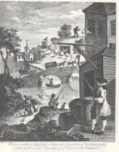 William Hogarth, Satire sur une fausse perspective, 1754, gravure
